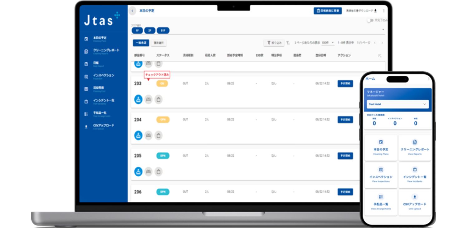 ホテル客室清掃の変革に挑むEdeyans(イーデヤンス)。同分野に特化した清掃管理システムJtas(ジェイタス)と清掃オペレーションを組み合わせ、非効率なアナログ業務や人手不足などの課題を解決しています。